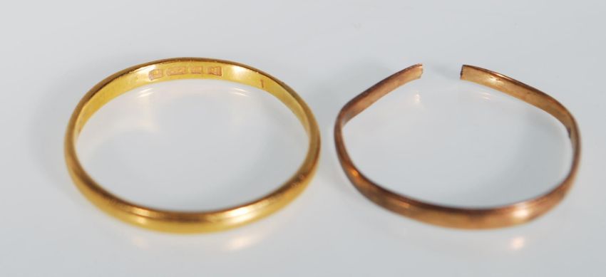 A 22ct gold hallmarked band ring of normal form, size with a weight of 1.9g.