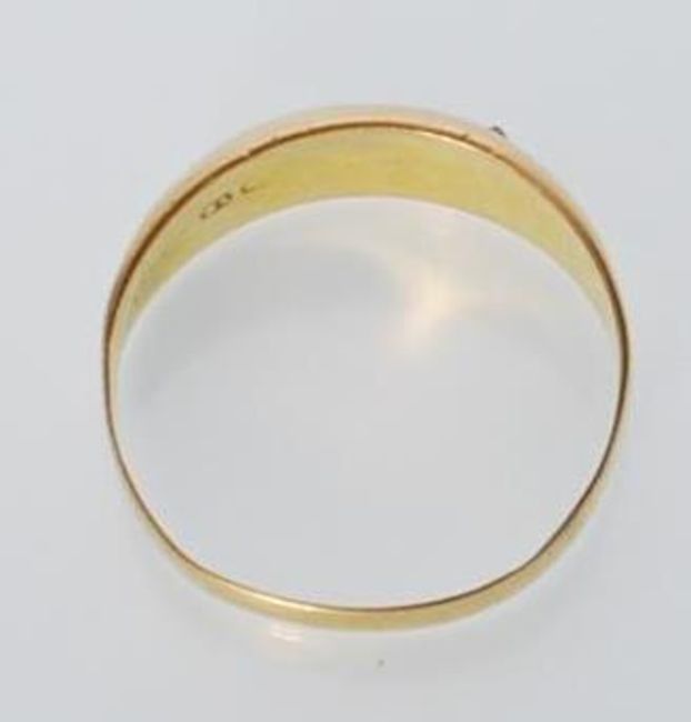 A hallmarked 18ct gold gypsy ring set with a central round cut emerald and fourn round cut diamonds. Hallmarked Birmingham (date mark rubbed). Weight 1.7g. Size M.5.