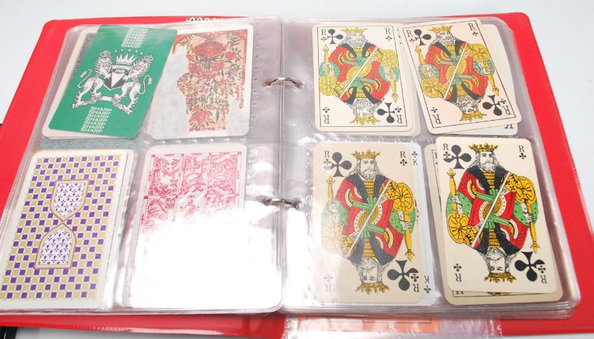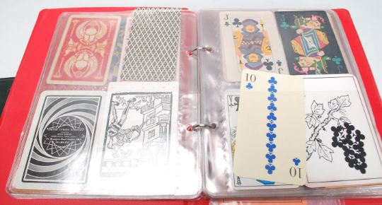 A collection of 20th Century playing card games to include three boxed sets of Indian Ganjifa cards of round form each being hand painted and contained within wooden boxes with hand painted decoration and three albums of vintage playing cards.