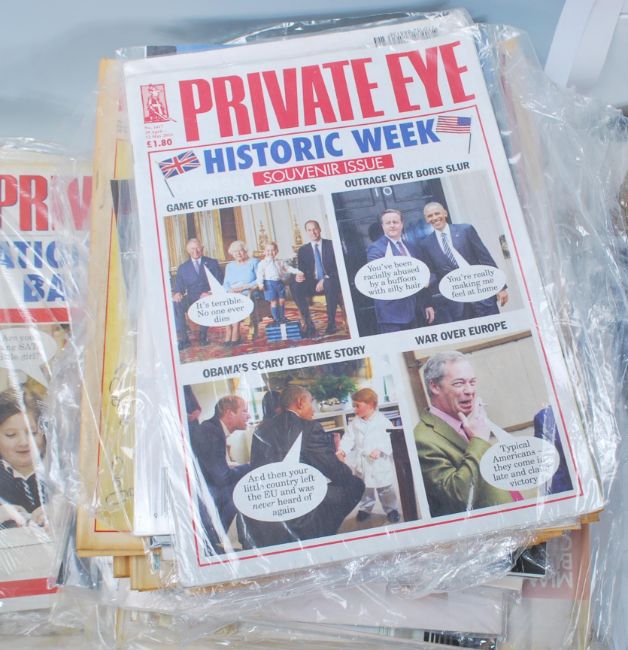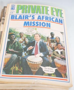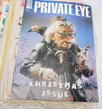 A large collection of Private Eye magazines dating from the late 1970's through to to recent years, including hundreds of issues across three boxes.