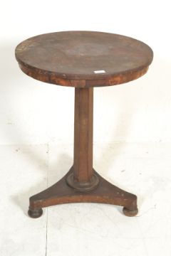 A Regency 19th century rosewood wine table being raised on a tripod base with bun feet having hexagonal column with circular top above. Largest item measures 75cm diameter and 57cm high.