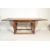 A large early 20th Century oak draw leaf refectory dining table raised on cup and cover supports united by stretchers having long refectory planked wood table top. Measures 76cm high by 136cm wide by 106cm deep.