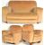 A 1930's Art Deco three piece suite comprising pair of armchairs and a two seat sofa settee being upholstered in a yellow velour fabric having pad oak feet.  Measures 85cms x 155cms x 85cms