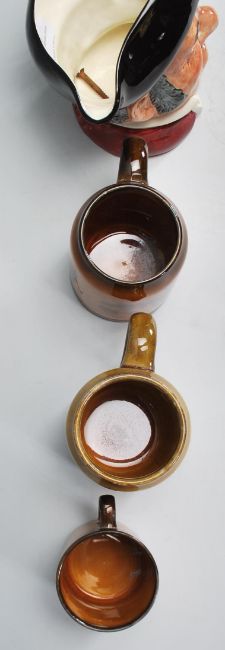 A Royal Doulton toby character jug entitled Mine Host D6468, A Royal Doulton figurine of Mary Had A Little Lamb and a collection of Coaching Series mugs by Royal Vistas Ware x 2 and 4 by MacMillan & Co