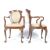 A set of four 19th Century antique mahogany ship's dining chairs having carved armorial shield back rests with shaped broad arms. Cream leatherette back pad and lift out seat cushion pad. Al raised on cabriole legs with pad feet. Measures: 88cm x 58cm x 43cm.