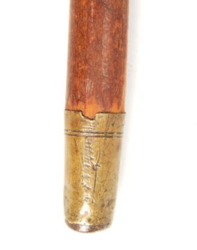 An antique 19th century Victorian ladies walking stick cane. Shaped horn handle with a hallmarked silver monogrammed collar (hallmarked for Joseph Hicks, Birmingham, 1886). Mounted atop a bamboo tapering cane. Measures approx; 90cm tall.