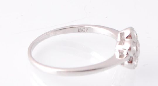 An 18ct white gold and  diamond cluster ring . The ring set with cluster of diamonds within a milgrain setting. Marked 750 tests 18ct gold. Weight 2.1g. Size N.