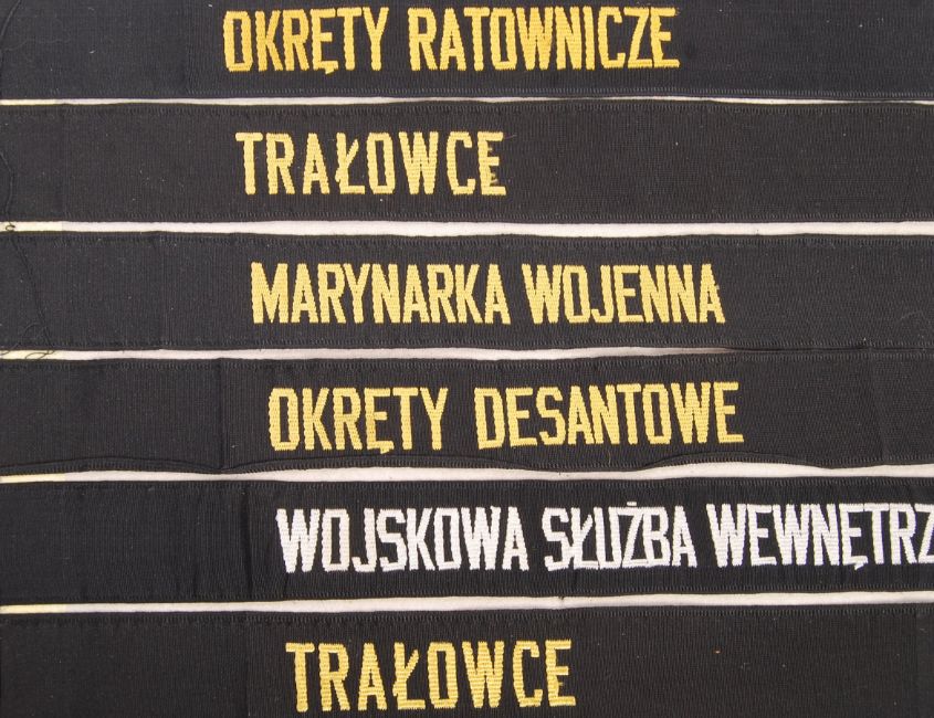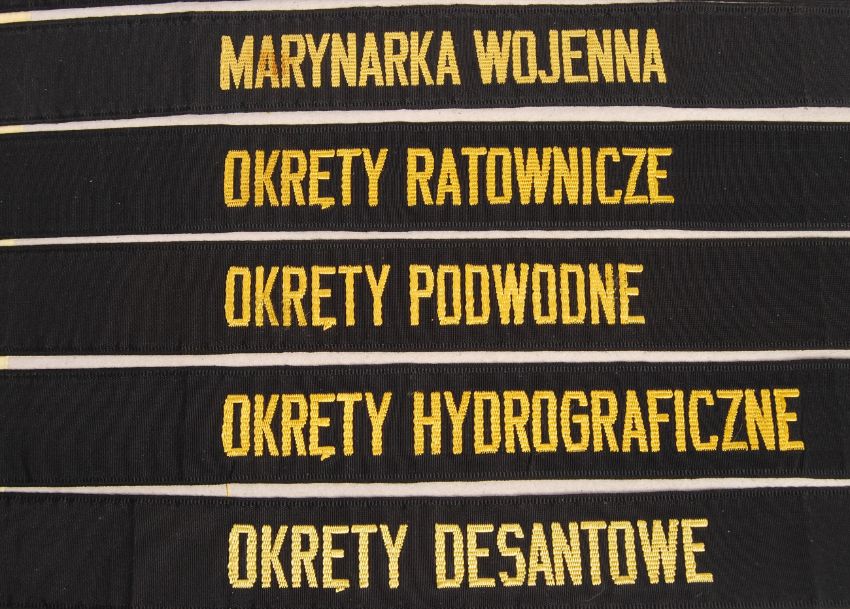 A collection of 11x assorted Polish naval cap tallies to include; Okrety Desntowe, Marynarka Wojenna, Okrety Podwoone and many others.