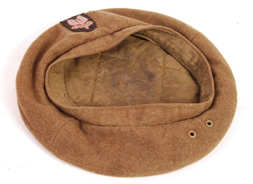 A rare original WWII Second World War British SAS Special Air Service issued General Service beret. Complete with ' Who Dares Wins ' cloth patch to front. Dated 1941 to interior. A rare beret, with a rare badge.