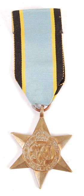 A WWII Second World War Air Crew Europe Star style medal, awarded to a Mr V. J. Dearden. With original ribbon. Comes with Dearden's enlistment form for the RAF Volunteer Reserves, dated 27th July 1944. Rare. Medal a replacement.