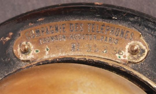 A scarce original WWI First World War era believed field / trench bunker telephone. Made by the ' Compagnie De Telephones ' and being No. 35336. Brass bell, with wiring to inside and attached is the telephone being of simple construction with a shaped brass mouth piece and bakelite earpiece. Unusual and rare period telephone.