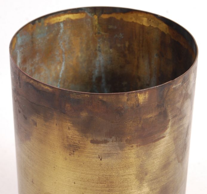 A pre WWII Second World War German Nazi Third Reich solid brass 15cm FH 18 Field Howitzer shell case. Nazi Marking and serial codes to base. Measures; 26cm.Note; This shell is not cut down - Original Height.