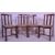A set of 4 1940's oak dining chairs of utility form. Raised on squared legs united by stretchers having drop in seats with railed back rests and carved top rails.