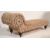 A 20th century chaise longue having a scrolled back and arm rest, upholstered in good quality floral fabric and raised on ebonised turned legs and castors. Measures 70 cm high  x  185 cm wide  x  65 cm deep.