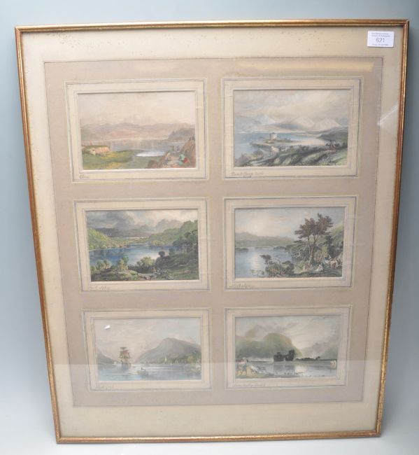 A set of antique late 19th / early 20th century hand coloured engravings / etchings - namely all Scottish views of lochs and lakes. Neatly presented and framed.