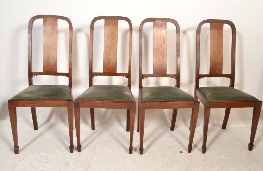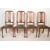 A late 19th century oak extending dining table raised on cabriole legs with pad feet and castors having rectangular top above together with a matched set of 6 Queen Anne revival dining chairs. Measures 75 cm high  x  137 cm wide  x  107 cm deep.