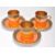 A vintage retro 1930's Carlton Ware coffee service having a lustre glaze consisting of coffee pot, creamer jug, sugar bowl, and six coffee cans and saucers, all in an orange colourway with black rims and gilt interiors. All marked Carlton Ware to the bases. Measures 19 cm high.