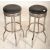 A pair of vintage retro 20th Century chrome bar / breakfast stools with black leatherette seat and footrests.