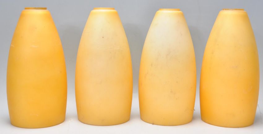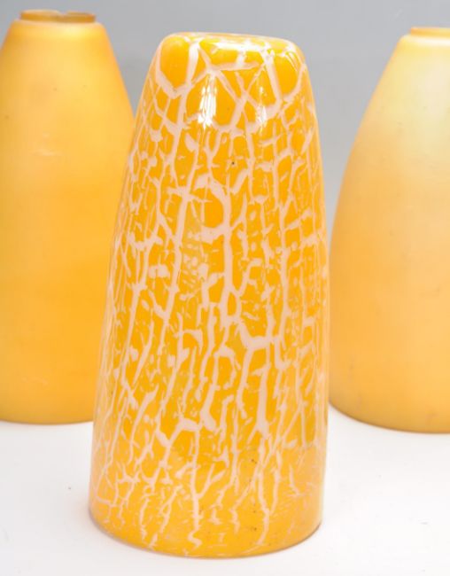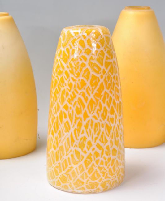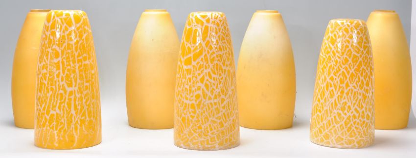 A collection of colourful 20th century glass lamp / light shades. To include Italian style studio art glass shades along with yellow and white conical shades also