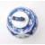A 19th Century blue and white lidded vase being hand painted in the prunus pattern with a central panel decorated with the precious objects / 100 antiques pattern, complete with lid to top with fu dog finial. Fur character marks to the base.  Measures 31 cm high.