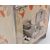 A vintage 20th Century tin model of a stove / oven having a series of doors and drawers to the front with tail rail above. Finished in white with floral decoration and being raised on bracket feet supports. Measures 23 cm tall x 23 cm wide x 18 cm deep.