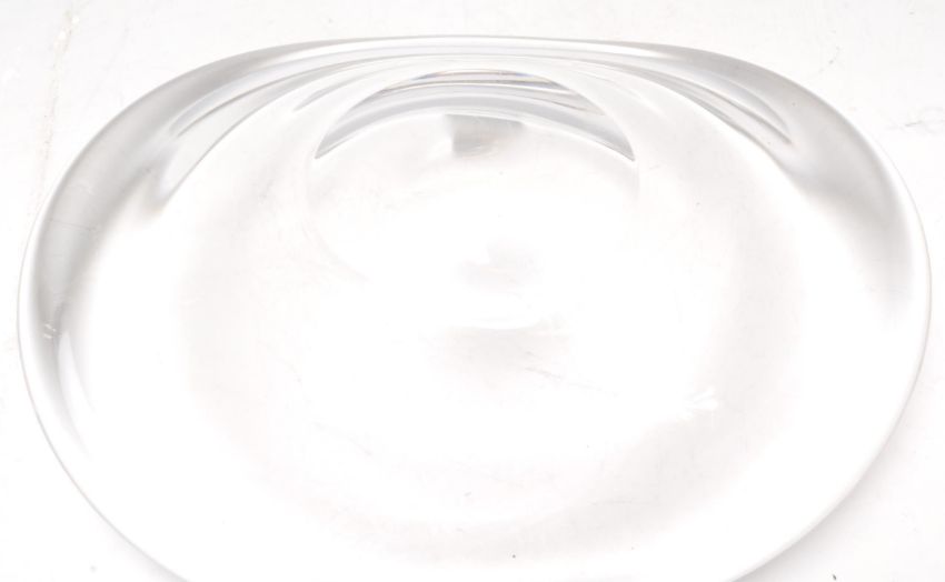 A vintage retro 20th Century heavy clear glass centerpiece table bowl in the manor of Orrefors. Unmarked.