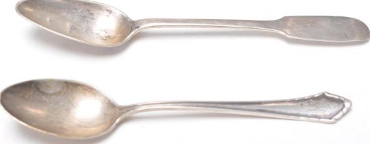 A mixed group of silver and silverplate wares dating from the early 20th Century to include a stamped 800 Continental cutlery set comprising knife and fork, serving spoon and teaspoon, together with another 800 Continental teaspoon. A silver plate photo frame, pair of candlesticks, cruite etc.