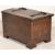A 20th century antique revival elm coffer of small rustic proportions. Of rectangular form with hinged top having brass cast and wrought iron hinges and handles. Measures 135 cm high  x  53 cm wide  x  35 cm deep.
