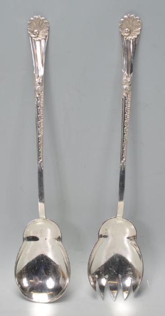 A set of Walker and Hall silver servers having scrolled design handles with shell terminals. Hallmarked Sheffield 1923. Weight 185g.