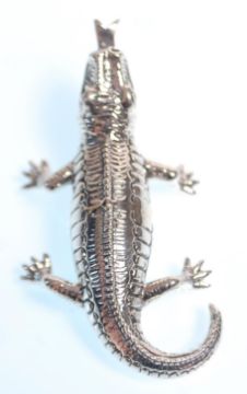 A stamped 925 silver figurine in the form of a lizard with a forked tongue. Measures 5cm. Weight 15.5g.