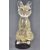 Archimede Seguso - Murano - An original mid 20th Century Italian Venetian studio art glass sculpture figure figurine of a stylised cat. Bubble control head and body with gold flex detailing. Applied purple glass eyes and seated on a burgundy circular glass cushion. Measures: 12cm tall.
