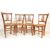A set of 6 French early 20th century beech and rattan weave dining chairs. Raised  on squared legs with stretchers supporting rattan weave seats with sunburst panel back rests to each. Measures 82 cm high x 40 cm wide x 40 cm deep.