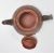 A Chinese Yixing teapot having bamboo style handles and spout, the body having raised applied floral decoration glazed in yellow and dark brown. Stamped with character mark to the base.