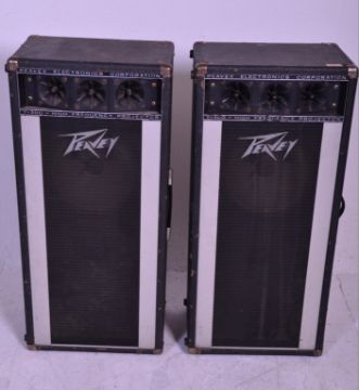 A good large pair of Peavey Electronics Corporation speakers. Model T-300 High Frequency Projector. Finished in black. Measures 91 cm high.