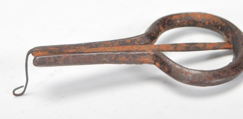 A 19th Century musical instrument jew's harp / mouth harp of metal construction. Measures 5 cm x 9 cm.