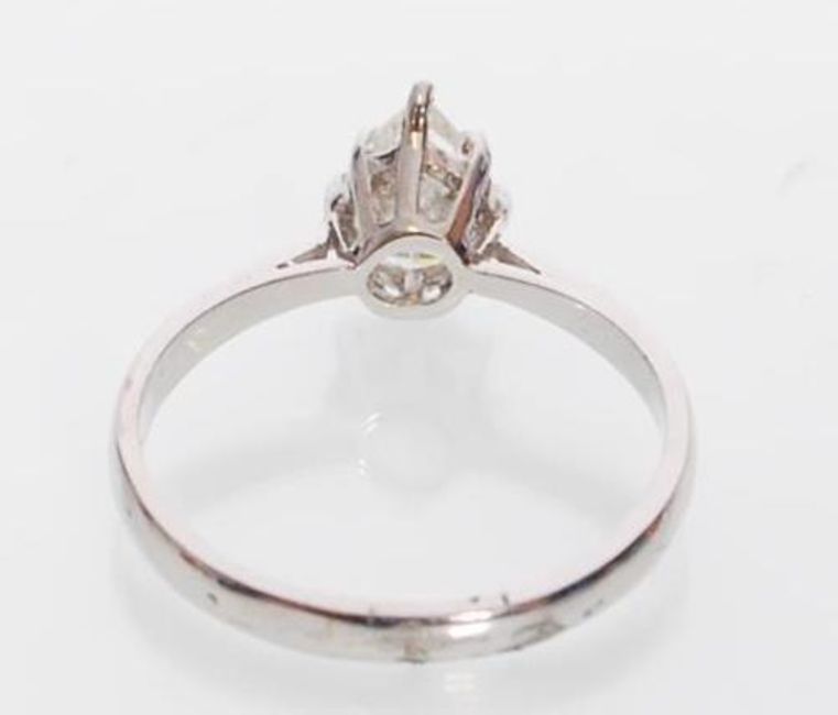 An 18ct white gold solitaire ring set with a teardrop cut diamond estimated at 50pts. Weight 2.7g. Size N.