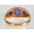 An 18ct yellow gold ladies dress ring set with a central oval faceted cut sapphire flanked by two smaller sapphires interspersed with round cut diamonds. Hallmarked for Birmingham date letter M 1961. Gross weight 4.2g. Ring size O.