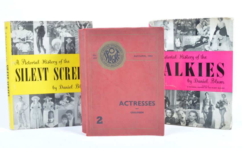 An original Autumn 1959 Spotlight Casting Directory ' Actresses & Children ' book - filled with those actresses available for hire during the period. Includes; Joan Plowright, Maggie Smith, Joan Sims, Margaret Rutherford and other names from the period. A fascinating read. Along with x2 vintage ' Pictorial History ' books - Silent Screen and Talkies.