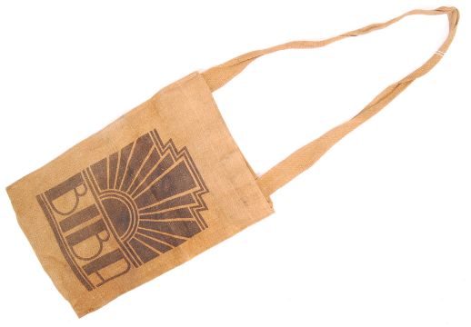 An original vintage rare Biba designer hessian shoulder bag. Large ' BIBA ' emblem to both sides, and retaining the original inner card collar which reads ' Creation Herve Et Fils '. With a single hessian strap. From the estate of Peter Wyngarde.