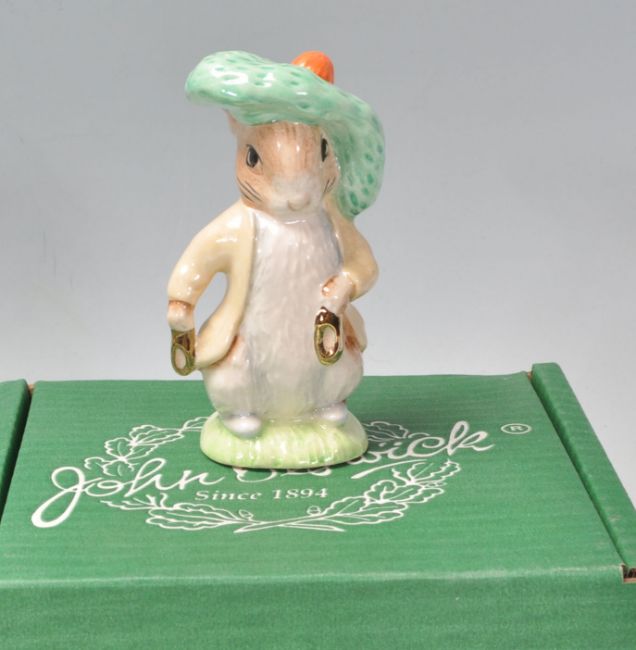 A group of Gold Stamp Beswick Beatrix Potter porcelain figures to include X2 Benjamin Bunny BPGOSF 4880, Tom Kitten BPGOSF 7791 and Jemima Puddle-duck BPGOSF 07792. All boxed.