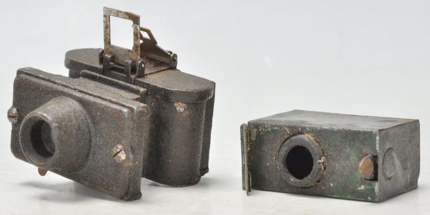 A vintage 1930's Merlin Subminiature 'Spy' Camera. British made, metal bodied with a black textured finish, together with accessory.