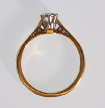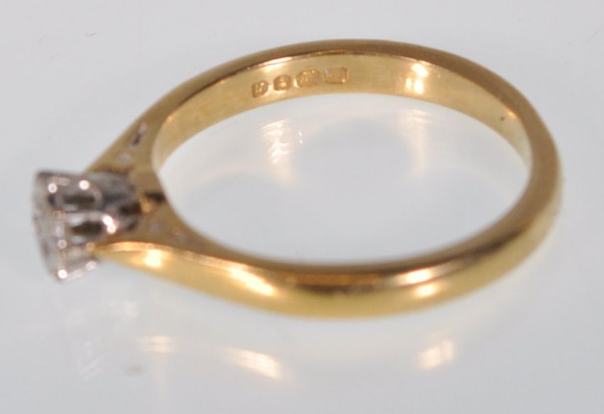 A hallmarked 18ct gold and diamond solitaire ring  illusion set with a round cut diamond. Hallmarked London 1968. Weight 2.7g. Size J.