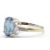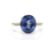 A 9ct white gold Birmingham hallmarked blue stone and diamond ring. THe central oval mixed cut sapphire within prong setting having diamond set shoulders to tapering shank. Total weight 2.9g / Size Q.5