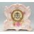 A 19th Century Victorian large Royal Bonn porcelain cased mantel clock of scrolled form with pink and gilt accent and floral sprays, the round face having an Arabic numeral chapter ring and moulded decoration. Circa 1880. Ochre Royal Bonn marks to the verso, marked 'La Cantal'. Measures 30 cm high x 33 cm wide x 15 cm deep.