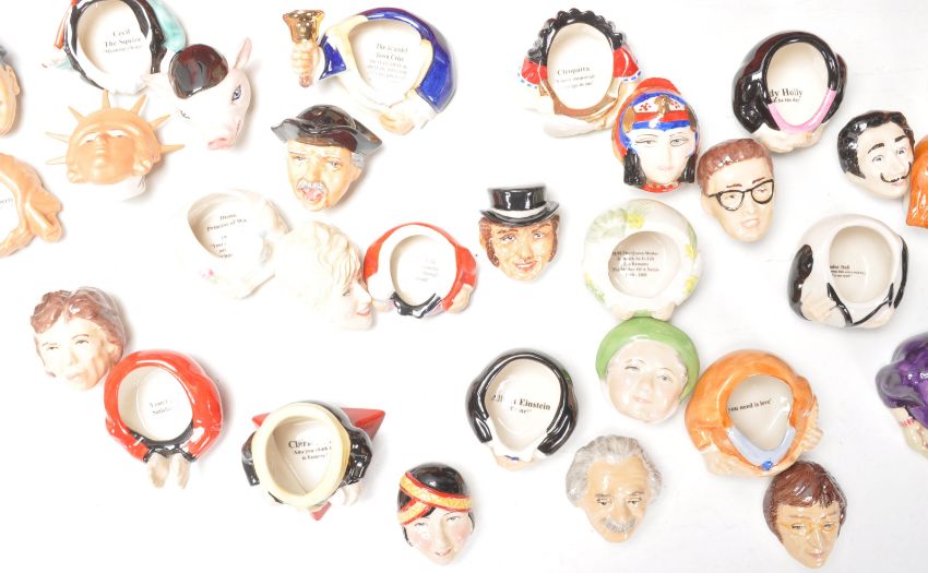 A group of twenty three Kevin Francis face pots to include various celebrity characters and animals to include Mick Jagger, Frankenstein, Liberty Statue, a Native American, Nelson etc. With original boxes.