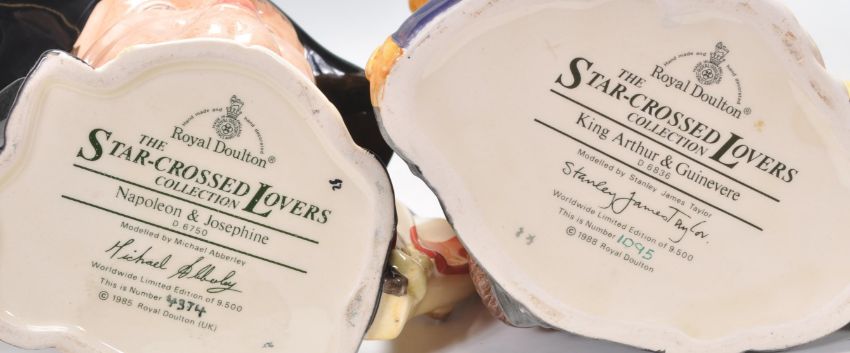 The Star-Crossed Lovers Collection - A group of four Royal Doulton ceramic Character / Toby jugs for the star crossed lover collection to include Napoleon & Josephine D6750, King Arthur & Guinevere D6836, Antony & Cleopatra D6728 and Samson & Delilah D6787. All being limited edition and hand numbered to bases.