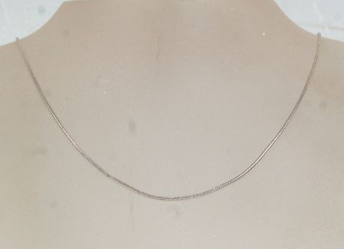 A group of three ladies silver necklaces to include a three panel collar necklace bearing London marks, another necklace having pierced Greek Key decoration and a snake link chain. Total weight 52g. Collar measures 11.5 inches long.