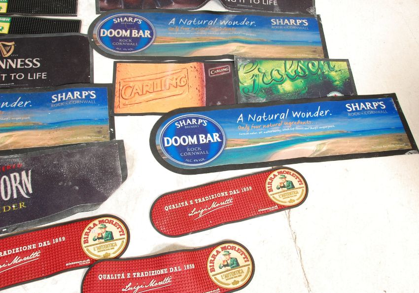 A collection of contemporary bar advertising beer mats to include Guinness, Blackthorn, Doom Bar, Carling, Birra Moretti, Overproof Rum, Heineken etc.