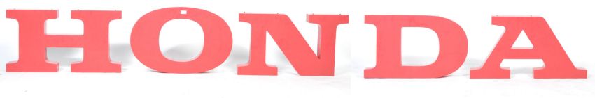 Honda - A late 20th century 1990's contemporary retro car motoring point of sale showroom advertising sign ' HONDA '. Red plastic form with silver backing panels. Each letter being and individual light Each measures approx; 41cm tall. Rare.
