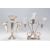 Two 20th Century silver plated table centerpiece epergnes to include one of tripod form with three cut glass flutes and one central flute supported by scrolled mounts together with another similar epergne having silver plated flutes and a silver plated basket of oval form.
